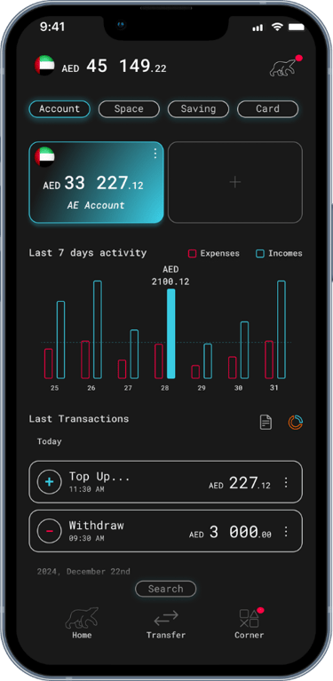 Manage your money across borders with a modern international bank account.
